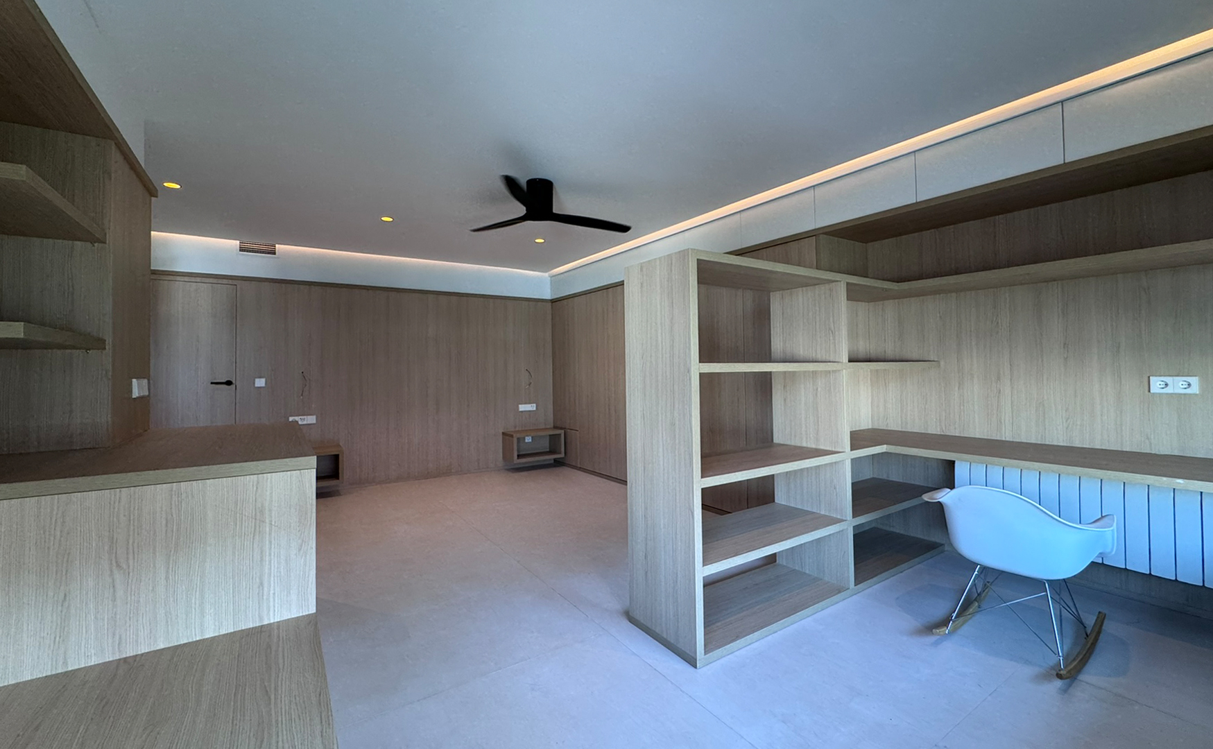 El objetivo es la reforma y ampliación de una vivienda unifamiliar. Las principales intervenciones consisten en la ampliación del dormitorio principal, el cual cuenta con la integración de un despacho con gran ventanal, la reforma del cuarto de baño para mejorar su funcionalidad y estética. Se prioriza la creación de espacios abiertos y conectados visualmente, garantizando una sensación de amplitud y continuidad.